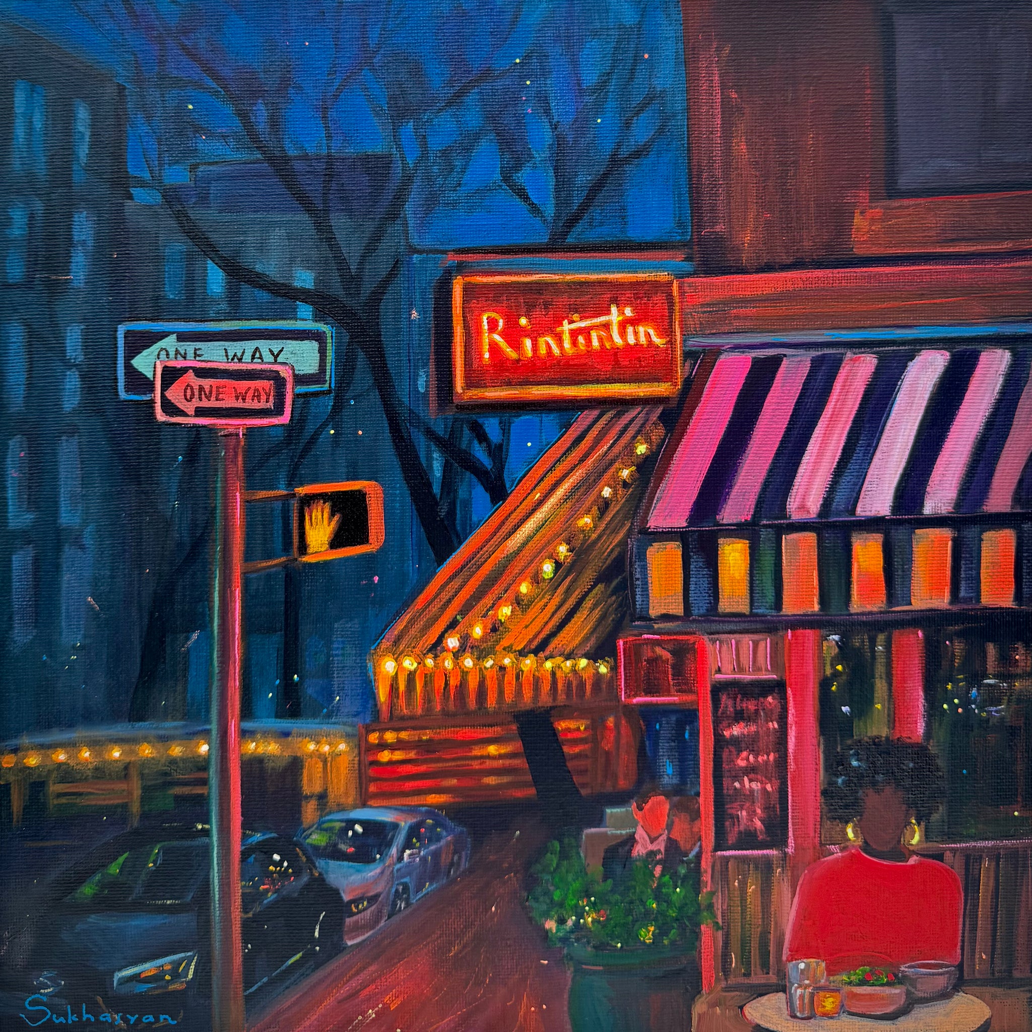 Original acrylic painting on canvas panel 12x12 inches (30x30 cm) by Victoria Sukhasyan. Artist’s biography, signed postcard and business card included.